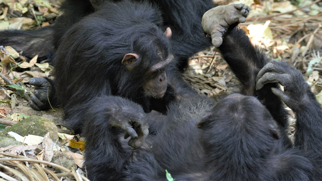 Due to long term researcher on the chimps they are very habituated allowing for you to watch them closely. Allot of time is social time mostly conducted in grooming one another. Chimps are omnivorous but mainly rely on fruits, shoots and leaves. They can also be observed hunting other primates and if lucky using tools such as small branches to extract termites/ants from nests.
